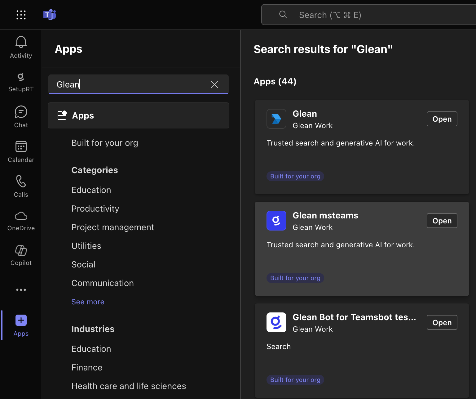 For more information, see Glean in Microsoft Teams: admin-guide.