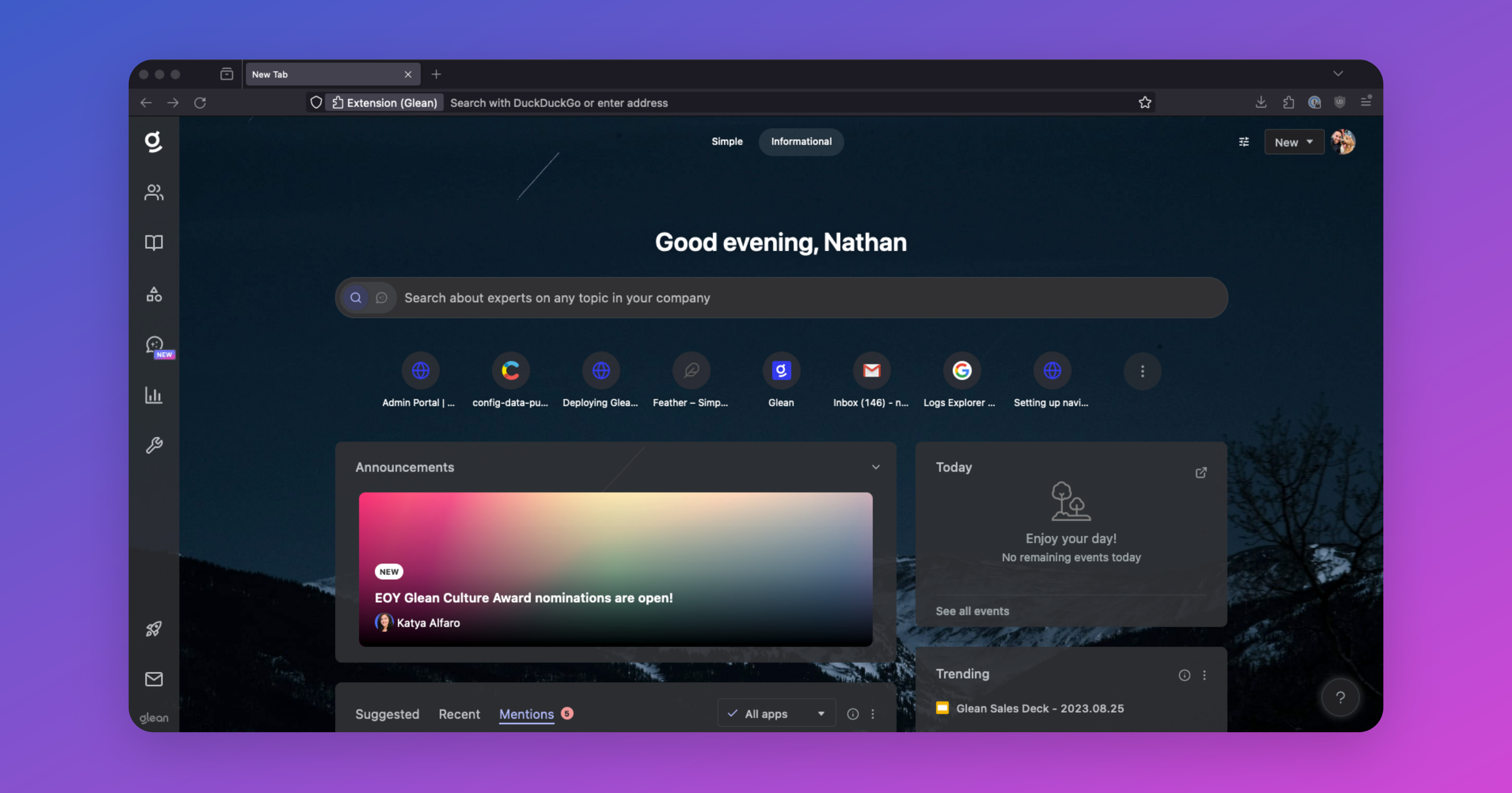 The Glean Browser Extension provides a better user experience and creates habits for higher adoption and usage, allowing all of your employees to get the most out of Glean.