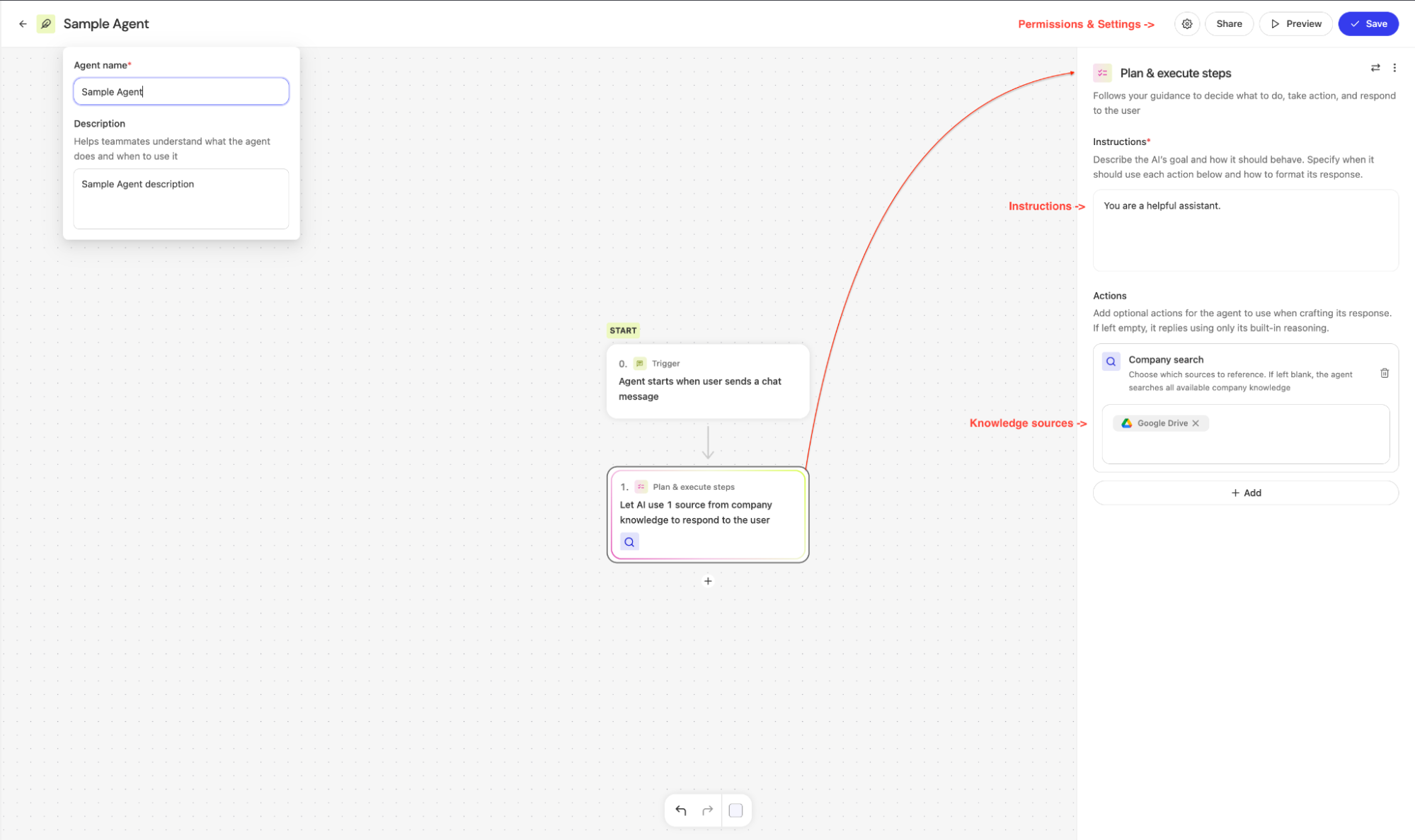 - App Instructions → Instructions for the “Plan & Execute” step in the Agent (see screenshot below)