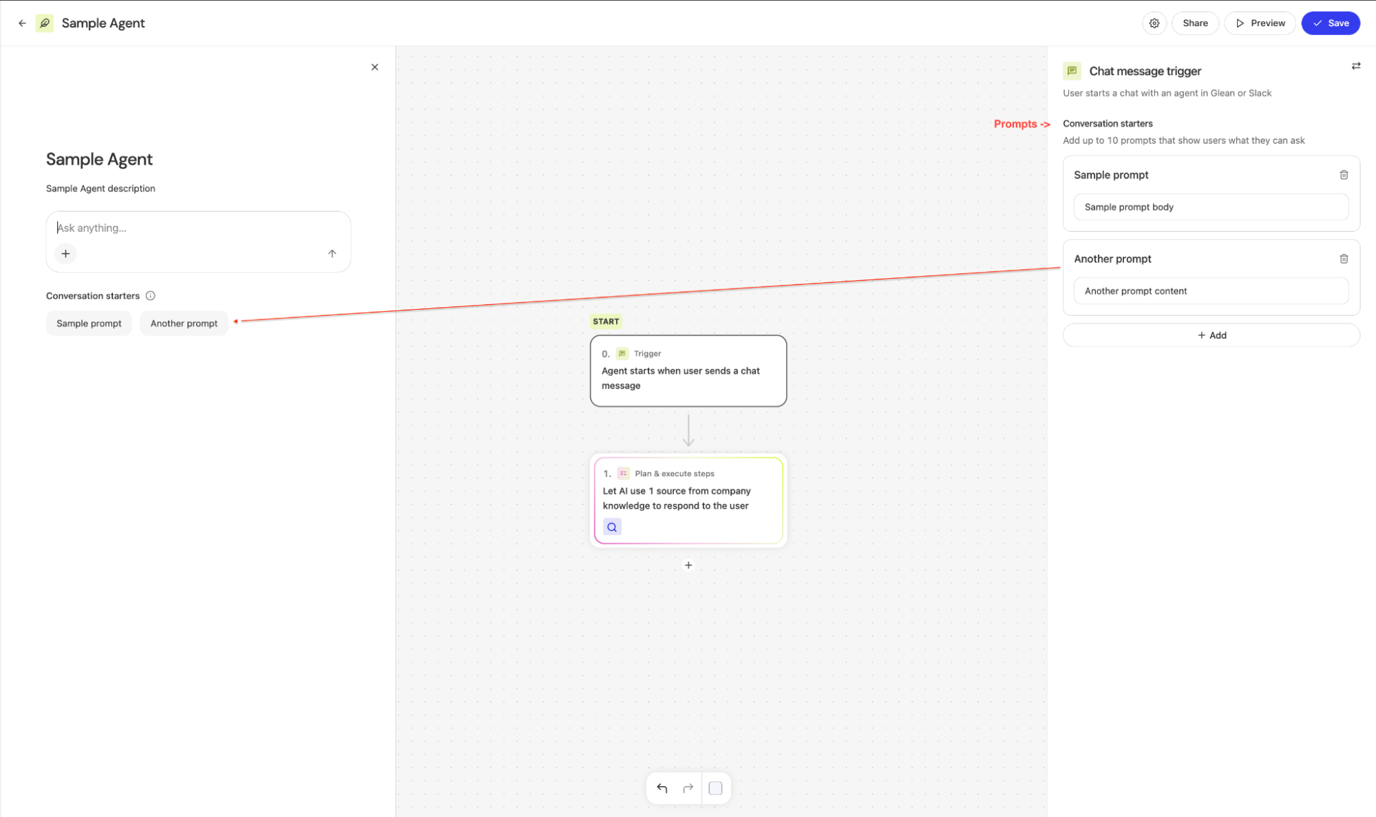 - Slack Settings are preserved as-is and can be accessed from the “Share menu” in the Agent builder.