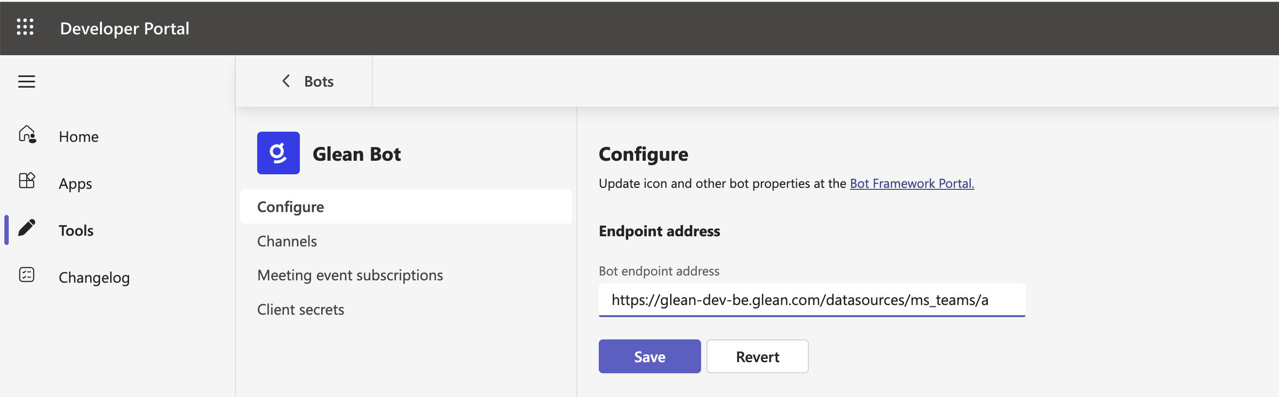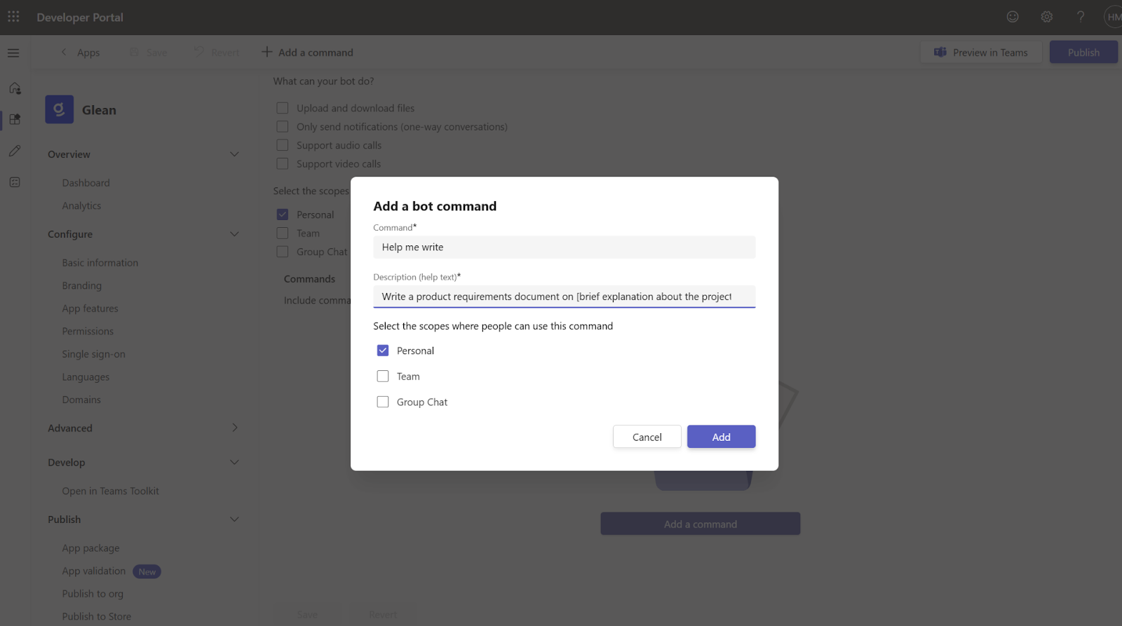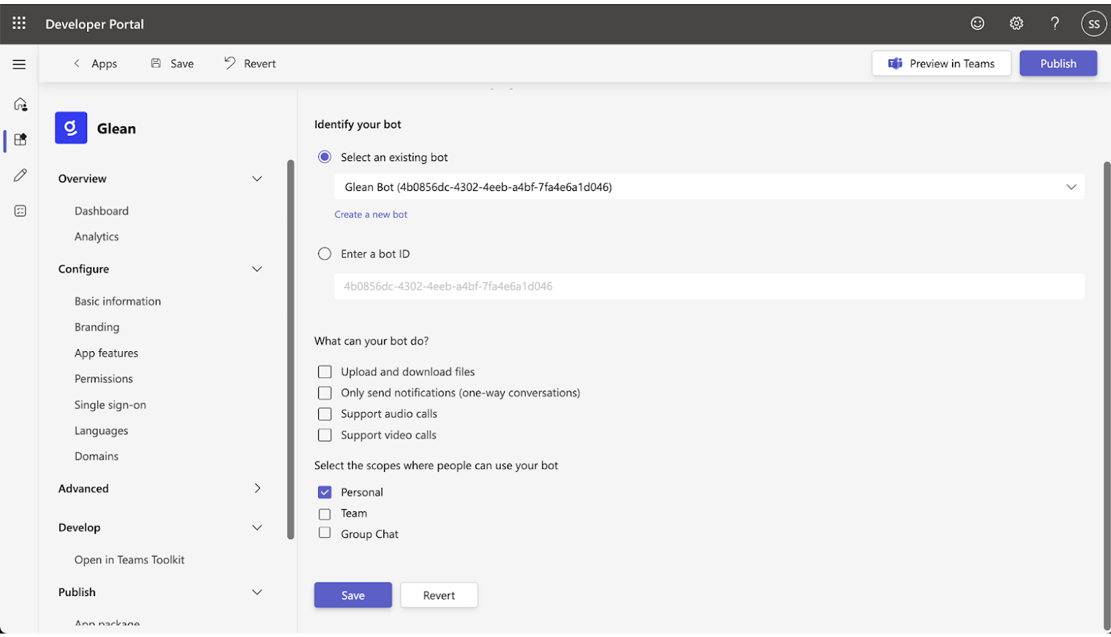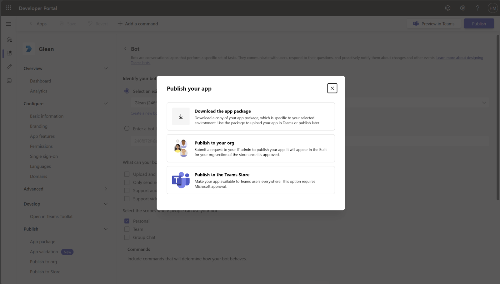 Phase 1: Set up Glean app in Teams Developer Portal