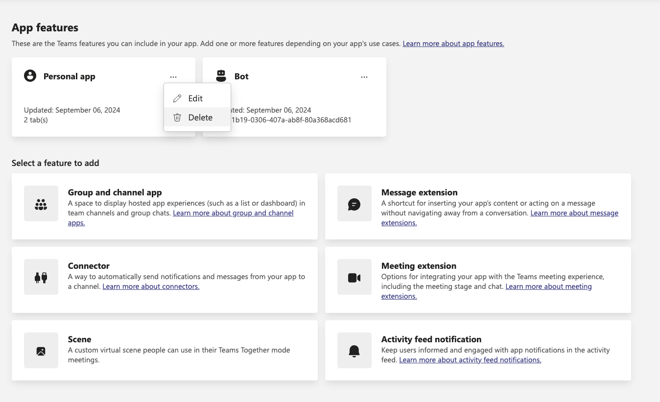 At this point, refresh the page and return to the 'App Features' tab. Occasionally, a 'Personal App' might be added by default. Since this isn't necessary, you can proceed to delete it.
