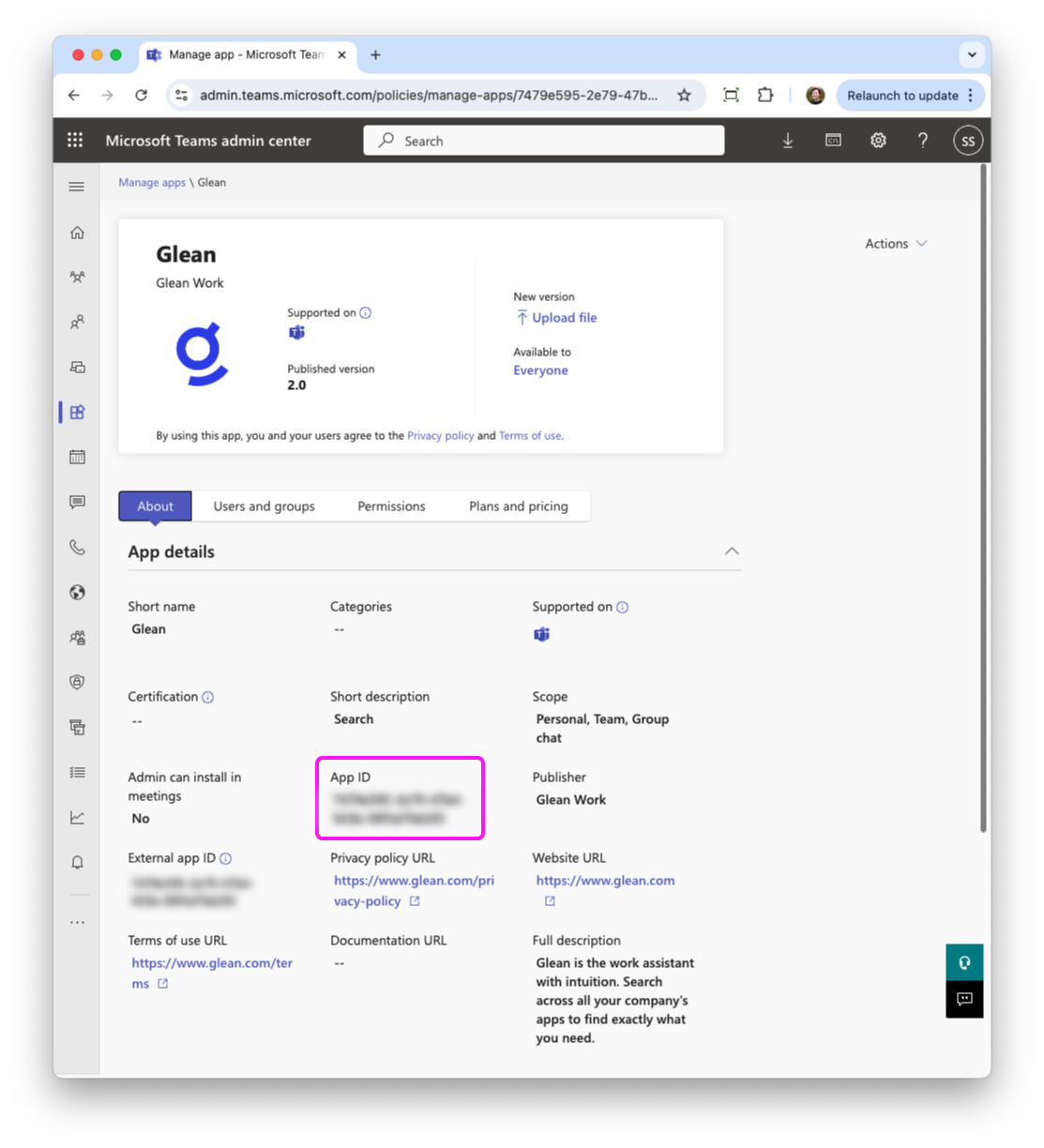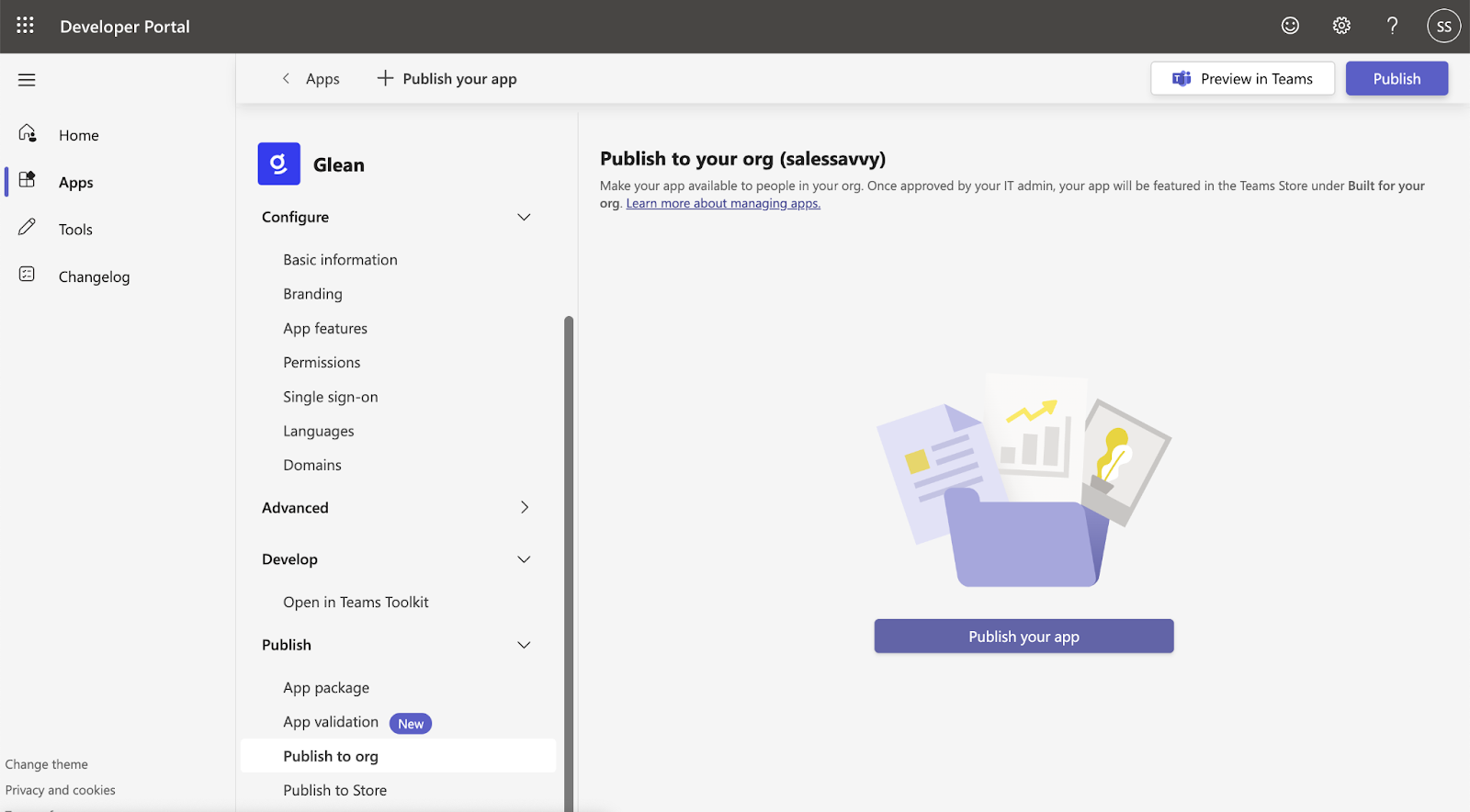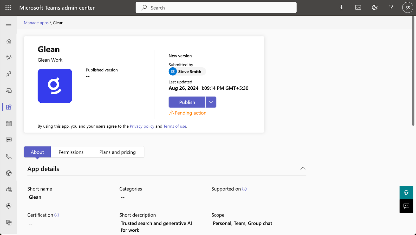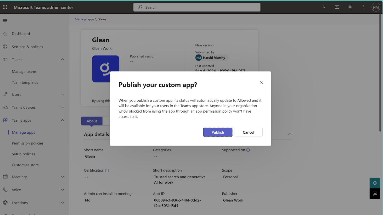 Once published, it will take approximately 24 hours for the Glean app to appear in the Teams store.