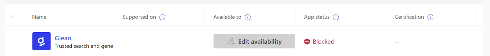 a. While waiting for the app to appear in the store, you can control which users or groups in your organization can access the Glean app.