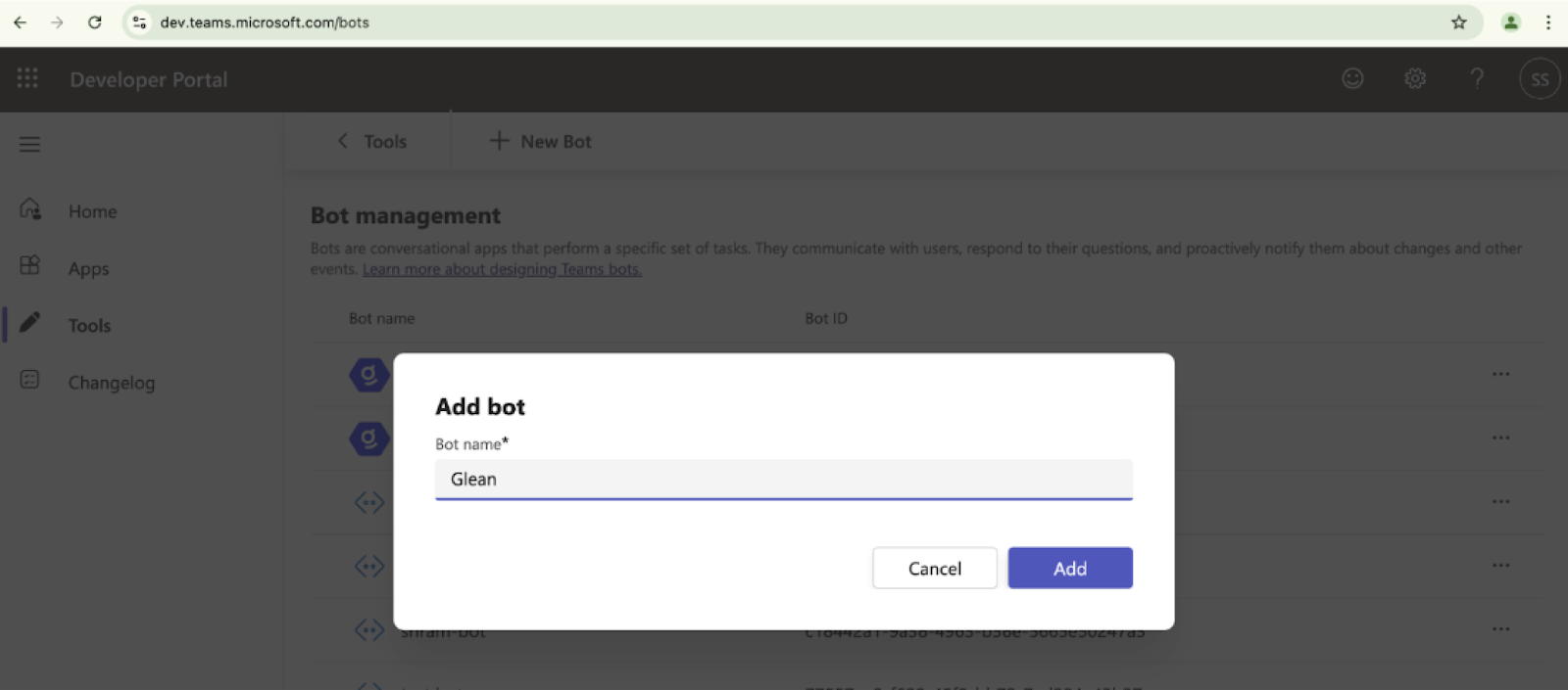 c. Name your bot (recommended: Glean), and click Add.
