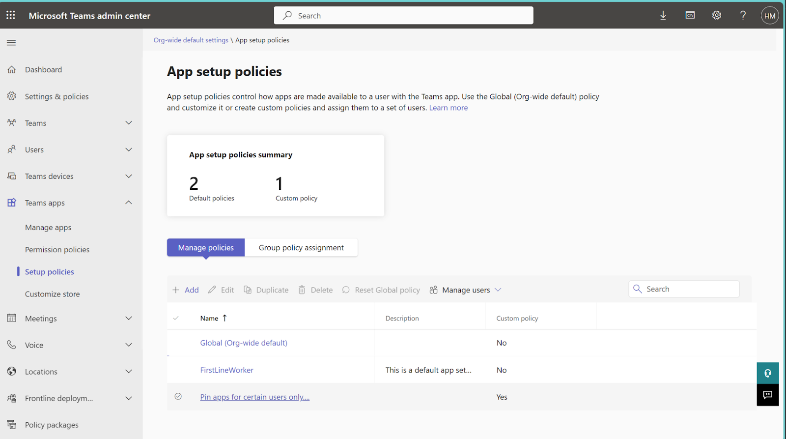 On the left panel, navigate to Teams apps → Manage apps.
