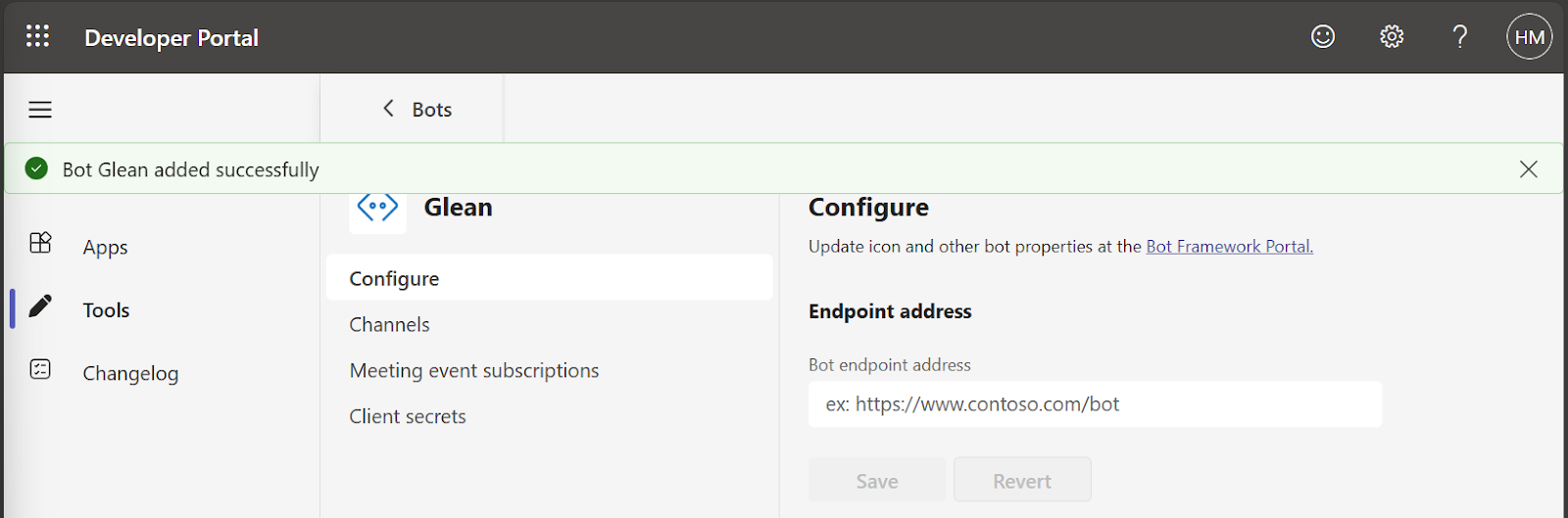 d. After the bot is created, you will see a confirmation screen.