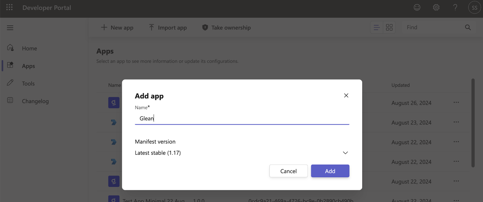 c. Name the app Glean and click “Add”.