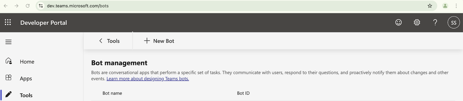 a. In the left navigation, go to Tools, then select Bot Management.