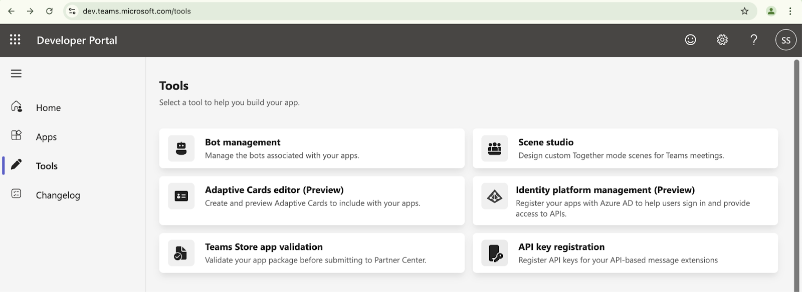 - Go to Teams Developer Portal.