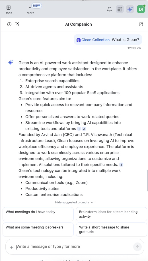 - Allow AI Companion to reference the organization's data sources