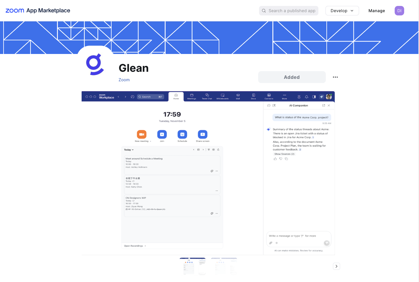 Configure Glean in Zoom