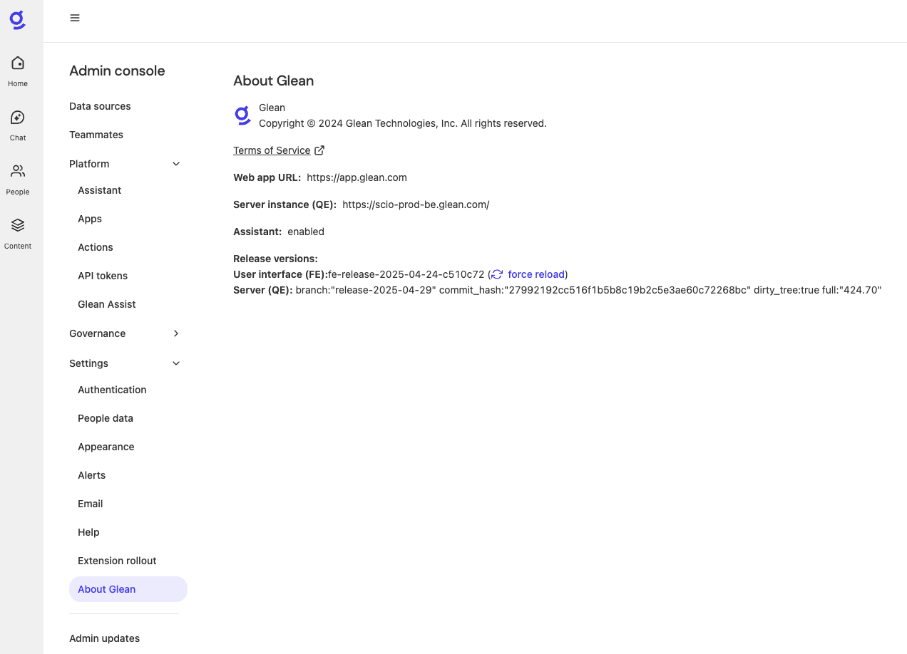 https://scio-prod-be.glean.com/rest/api/v1 (This is an example API endpoint. You can find your actual API endpoint in the Glean Admin console under Settings → About Glean.)
