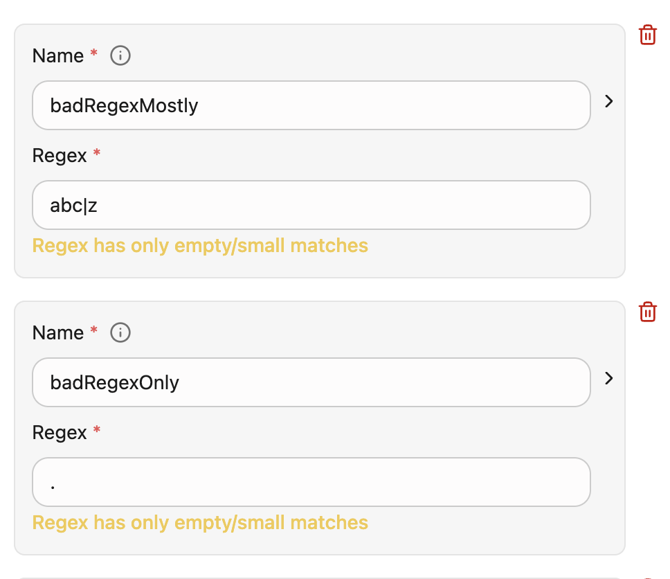 When Glean detects a problematic regex pattern for a policy: