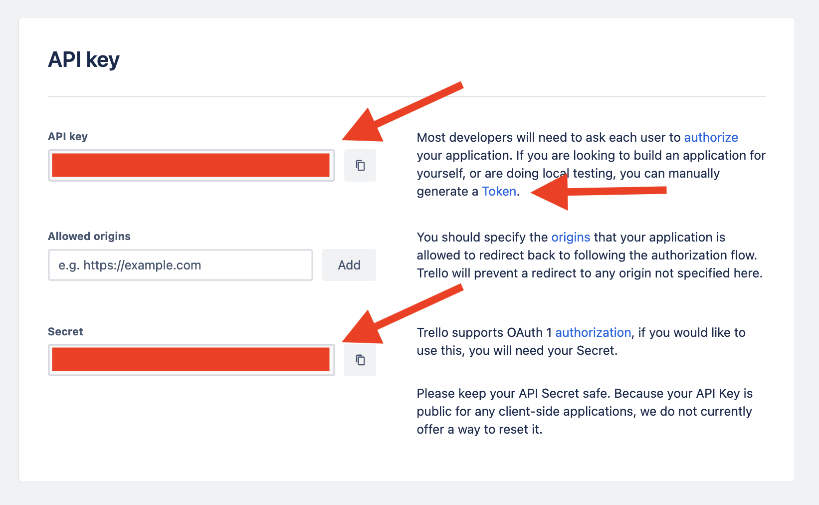 API KeyandWebhook Secret. Additionally, click on the link to generate a token manually, click allow and then store the token in theAccess Tokenfield.