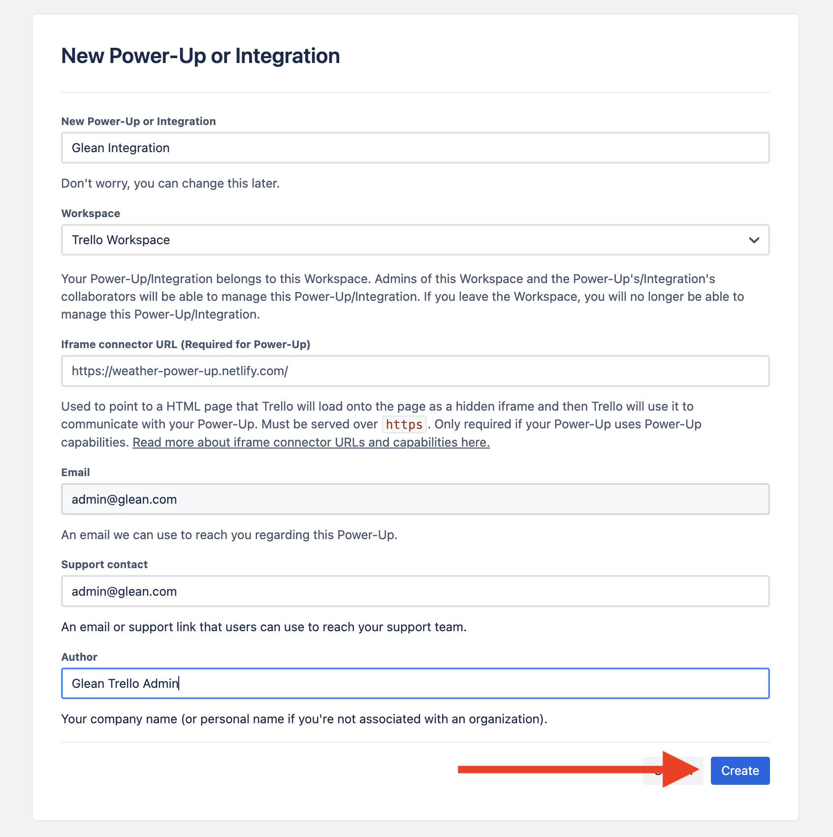 Leave the "Iframe connector URL" field blank and click "Create" once all the required fields are