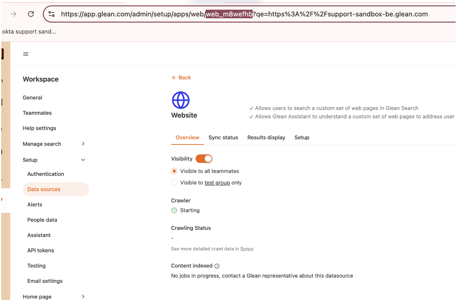 - On the same URL - https://app.glean.com/admin/setup/apps?advanced add the Key name "WEB_M8WEFHB_PASSWORD" followed by the key value as the password.