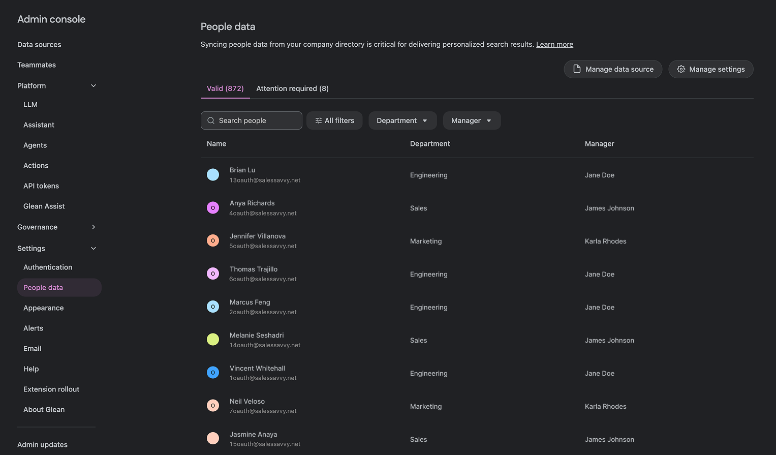 The People Data sync will start, and over the next hour, you will start to see your employee directory being populated in Glean.