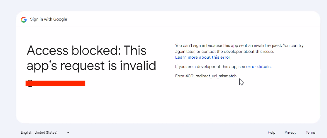 When clicking “connect” in assistant response it redirect to the particular application to complete the authentication but receives redirect_uri_mismatch or Access blocked error.