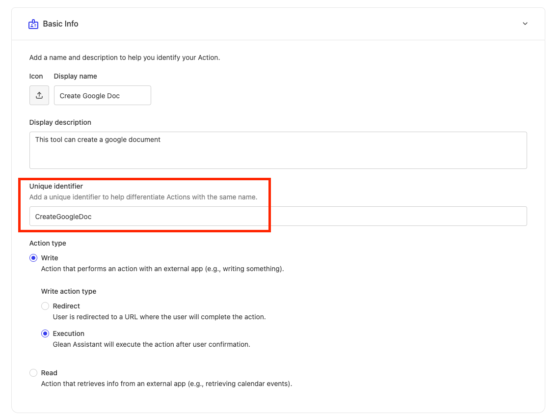 Note: “your-action-unique-identifier-name” is case sensitive.