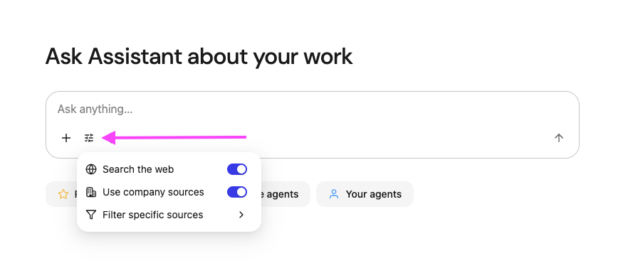 Toggle to "Search the web" mode to expand your search to worldwide knowledge.