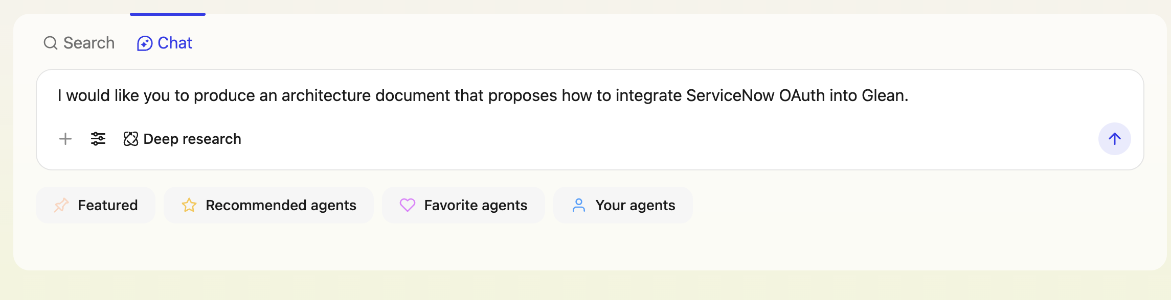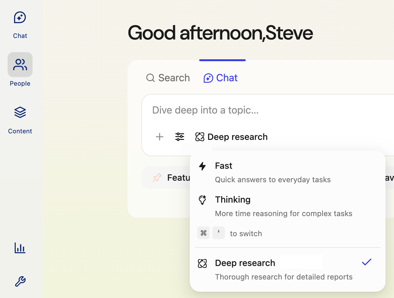 In Glean, click Chat and select Deep research mode.