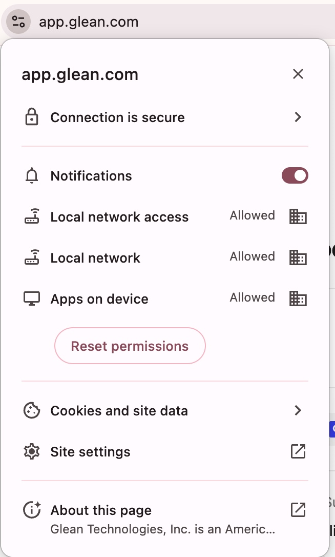 - Confirm you chose Allow in both the Glean prompt and your browser’s permission dialog.