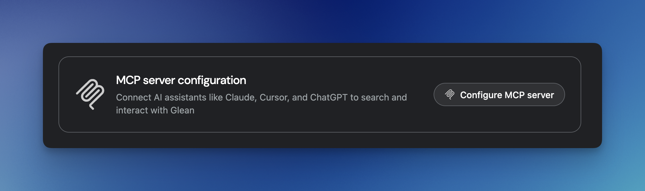 Before the MCP Configurator is available, a Glean Administrator must enable at least one Glean MCP Server.